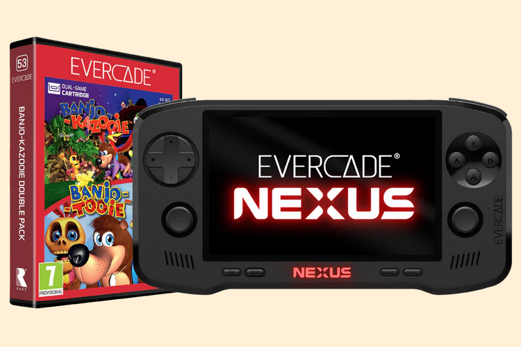 This one comes with an RGB Nexus logo out front, by the way, if you’re one of those folks who like your toys with light-up multi-color LEDs, while the built-in 5,000 mAh offers five hours of gameplay between charges. Like other devices in the outfit’s lineup, the handheld is meant to use their licensed game cartridges. It comes with one double-packl cartridge, which bundles the original Banjo-Kazooie with its sequel Banjo-Tooie. According to Evercade, the console is compatible with all the 700-plus games available in their 80-plus cartridge collection, too, so you have a nice selection of titles to pick up.