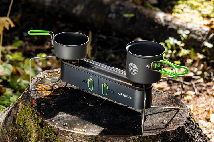 The Katadyn Optimus Gemini II is a two-burner camping stove that’s designed to collapse into a portable bundle for easily carrying inside your pack. Despite the small size, it’s a proper two-burner stove with enough spacing to fit a pair of pans and pots on top, allowing you to easily make coffee on a Moka pot