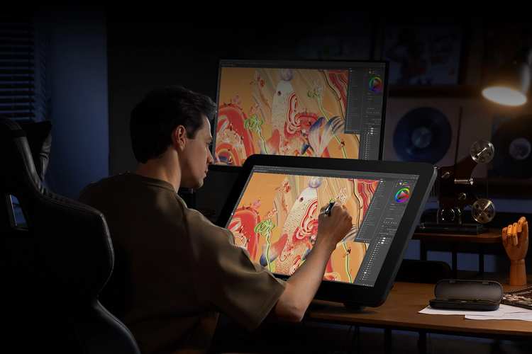 It comes with a pair of stylus pens, both of which can be stored on designated slots at the side of the pen display. Each of the stylus pens has 16,000 pressure levels, up to 60 degree tilt, 3g initial activation force, and accuracy within 0.4mm. Other features include an anti-glare layer, anti-fingerprint coating, three display ports (USB-C, HDMI, and DP), top and bottom airflow vents, and a weight of 15.4 pounds, so you definitely don’t want to be drawing while holding this in one hand. It’s compatible with Windows, MacOS, Linux (only on Ubuntu 20.04 LTS or later), Android, and ChromeOS.