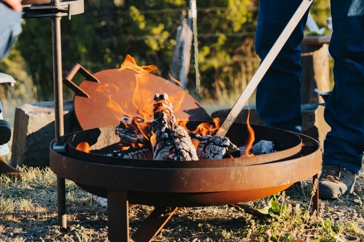 The Yeti Fire Pit consists of a fire bowl measuring 27 inches in diameter, a matching lid for covering it up when not in use, and a 33.75-inch steel rod with a safety grip to let you easily stoke the flame. Both components are cut in corten steel, which is designed to develop a protective bronze patina that serves as a natural barrier to extend the life of the material. Yes, the thin coat of rust that develops outside actually serves as a protective layer, ensuring the fire pit will hold up for many, many years. It comes with three legs, which elevates the bottom of the bowl around half a foot off the ground, ensuring you can keep the fire safely contained at all times.